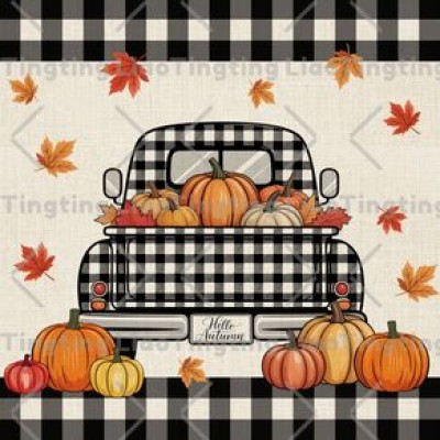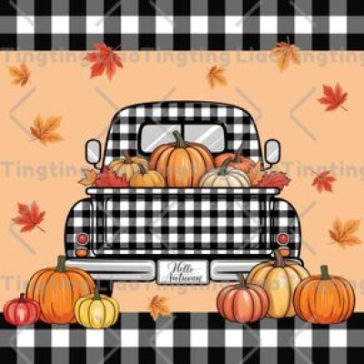 Autumn,Text,Truck,Plaid,Pumpkin,Maple Leaf,Hello Autumn,Linen