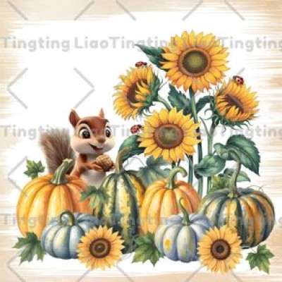 Autumn,Sunflower,Pumpkin,Thanksgiving,Squirrel,Watercolor