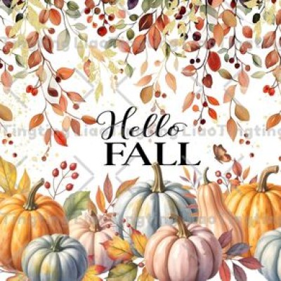 Autumn,Jam,Pumpkin,Thanksgiving,Leaves,Watercolor,Letter Hello Fall