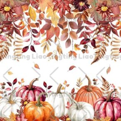 Pumpkin,Thanksgiving,Leaves,Autumn,Flowers,Watercolor,Stripes