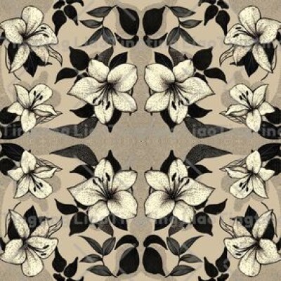 Simple Pattern,Monochrome Flowers,Black And White Lines,Vintage Khaki