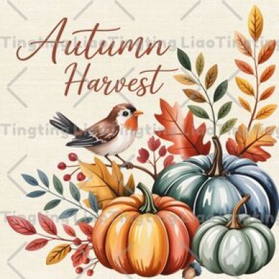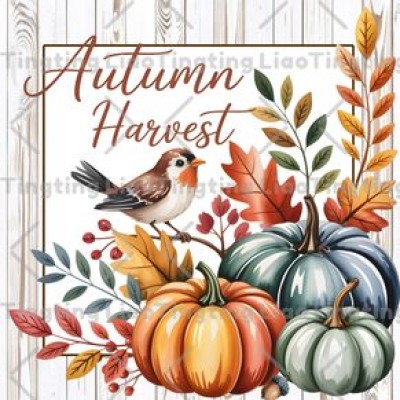 Autumn,Pumpkin,Maple Leaf,Pine Cone,Mushroom,Watercolor,Wood