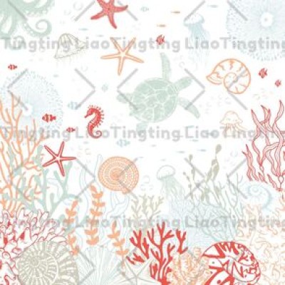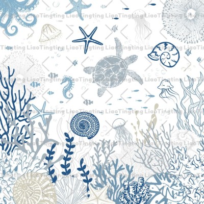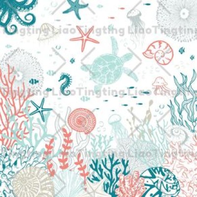 Summer,Ocean,Marine Life,Coral,Seagrass,Shell,Starfish,Jellyfish,Turtle