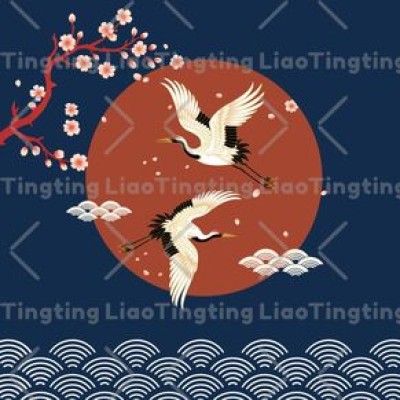 Japanese Style,Harmony,Japanese,Crane,Cherry Blossom,Wave Pattern