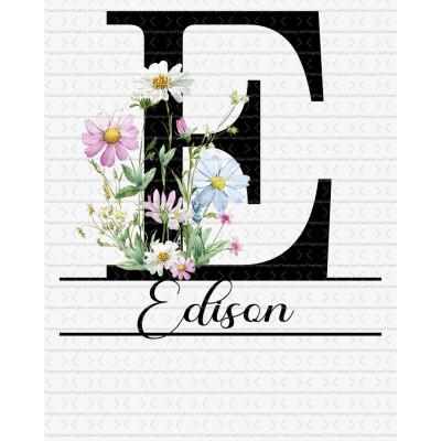 Letter Custom E,Vintage,Country,Flower,Wildflower,Pastoral