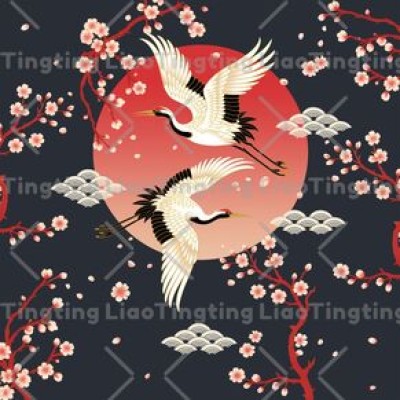 Japanese Style,Harmony,Japanese,Crane,Cherry Blossom,Wave Pattern