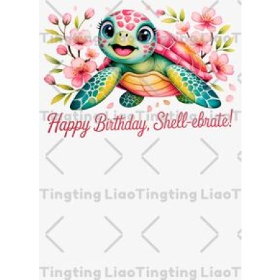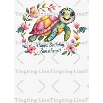 Cartoon Turtle,Birthday Wishes,Colorful Flowers,Natural Elements,Lovely Style