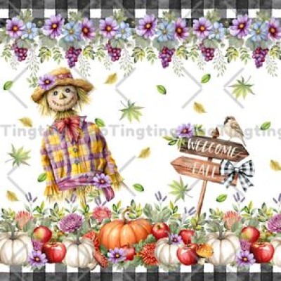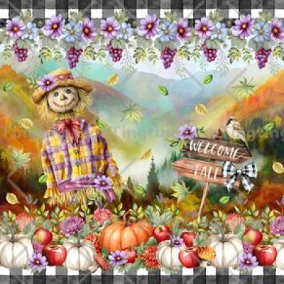 Autumn,Scarecrow,Grape,Fruit,Wildflower,Deciduous,Text,WELCOME TU FALL,Sparrow,Linen