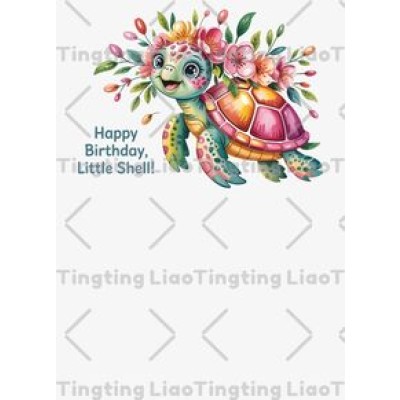 Cartoon Turtle,Birthday Wishes,Colorful Flowers,Natural Elements,Lovely Style