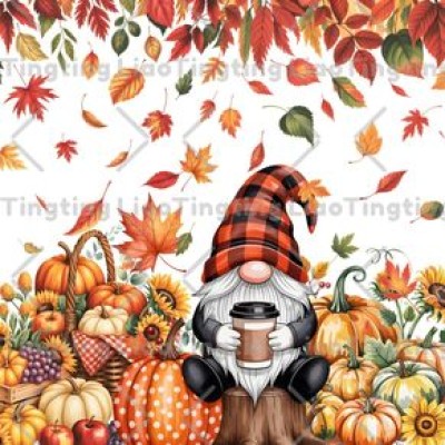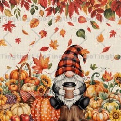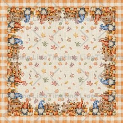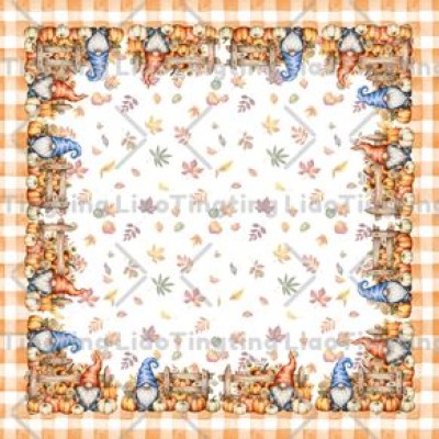 Autumn,Thanksgiving,Flowers,Pumpkin,Gnome,Wooden Fence,Watercolor,Country,Plaid