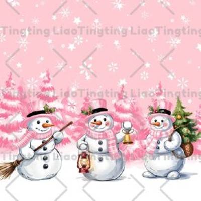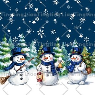 Christmas,Winter,Snowman,Pine,Christmas Tree,Snowflakes,Stars,Watercolor,Art,Retro
