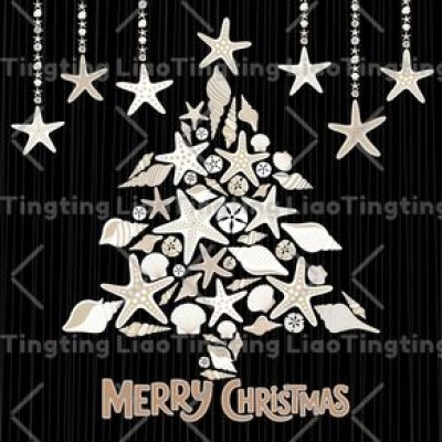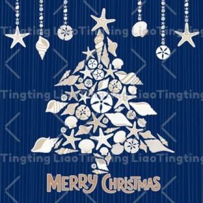Christmas,Winter,Summer,Ocean,Christmas Tree,Shell,Starfish,Conch,Art,Retro,Beach