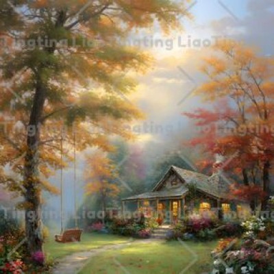 Autumn,Forest,Country,Cabin,Swing,Pastoral