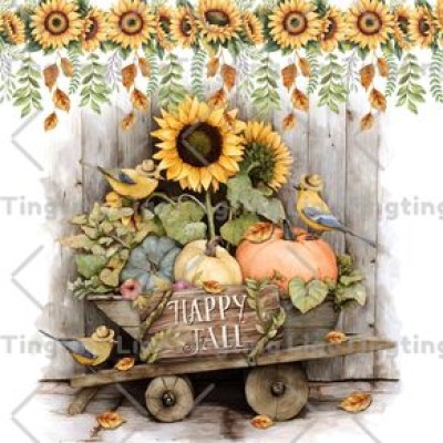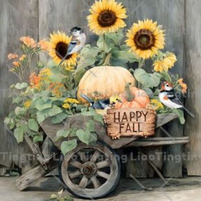 Sunflower,Pumpkin,Bird,Cart,Text,HAPPY FALL