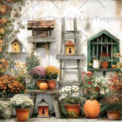 Autumn,Pumpkin,Farmhouse,Flowers,Birdcage,Pastoral