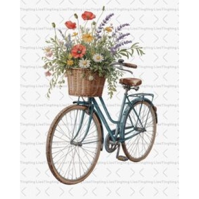 Bicycle,Flower,Flower Basket,Watercolor,Cartoon