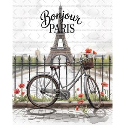 English Short Sentence,Illustration,Watercolor,Paris Tower,Bicycle,Fence,Flower