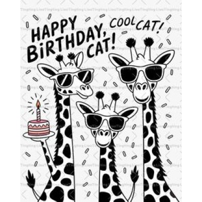 Giraffe,Sunglasses,Black And White,Illustration,Birthday,English Short Sentences