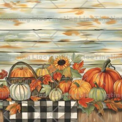Autumn,Thanksgiving,Pumpkin,Flower,Retro Style,Checkered,Hand Painted,Country Style,Oil Painting