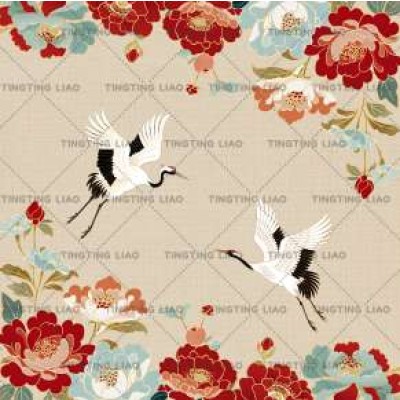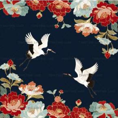 Japanese,And Wind,Japanese,Cranes,Peony,Deep Blue