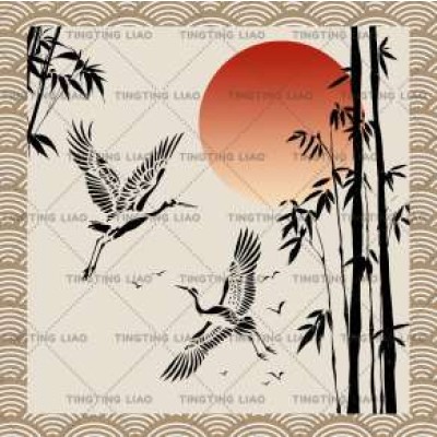 Japanese,And Wind,Japanese,Cranes,Bamboo Streaks,Sea Wave Streaks,Rice