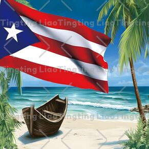 U.S.,Vintage,Sandy,Palm Trees,Oceans,Puerto Rico,Flag