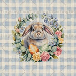 Easter,Spring,Watercolor Style,Hand-drawn,Rabbit,Flowers,Eggs
