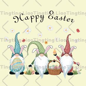 Happy,Easter,Easter Pigs,Colored Eggs,Pigs,Rabbits,Yellow Background