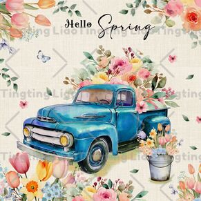 Spring,Easter,Flowers,Stripes,Mother's Day,Trucks,Blue