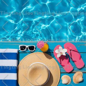 Summer,Swimming Pool,Grass Caps,Slippers,Towels,Shells