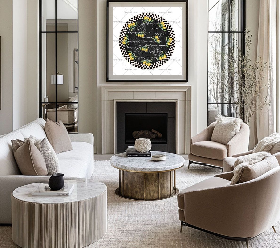 Summer,Lemons,Fruits,Farmhouses,Countryside,Black Patches,For Table Cover