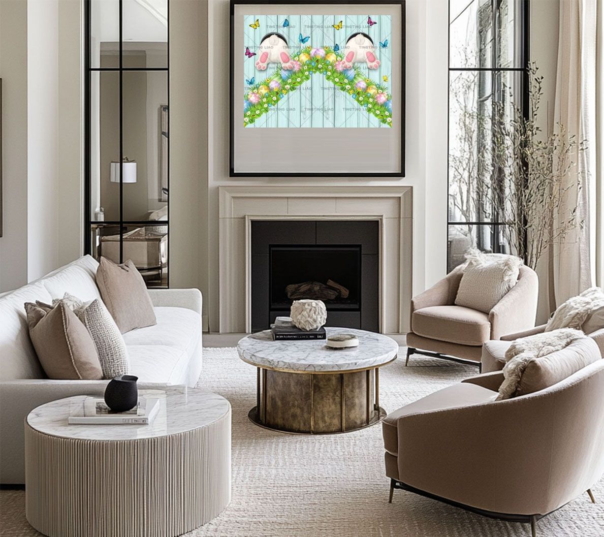 Spring,Easter,Resurrection Eggs,Rabbit Ass,Butterflies,Green Woodcuts,For Triangular Curtains