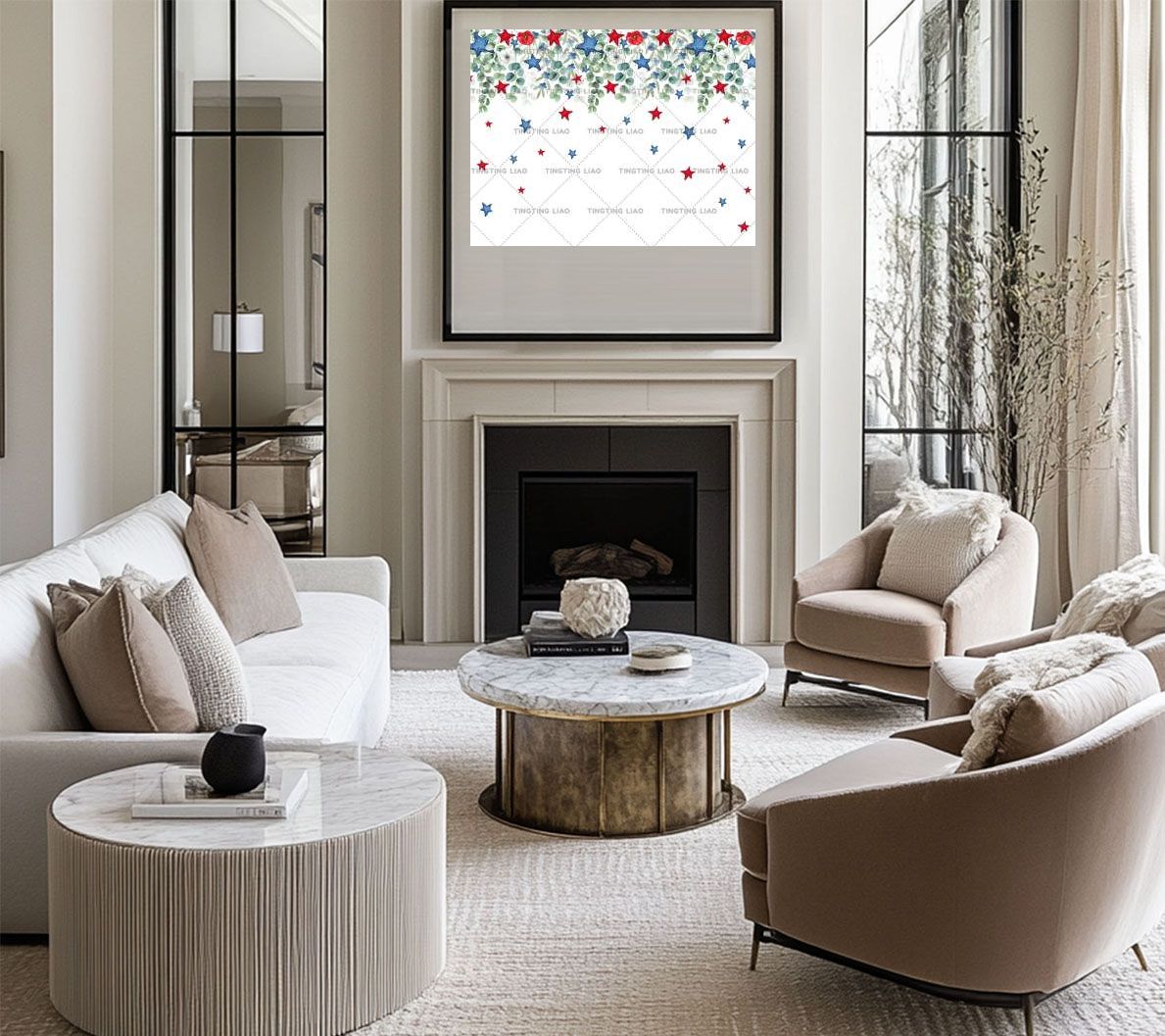 Independence Day,Eucalyptus Leaves,Five-point Stars,Against Triangle Curtains