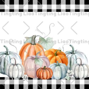 Autumn,Thanksgiving,Blue-orange,Pumpkin,Farm,Farmhouse,Vintage,Black And White Plaid