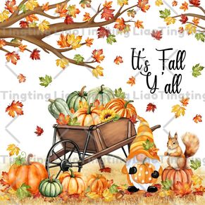 Autumn,Thanksgiving,Branch,Maple Leaf,Branch,Gnome,Cart,Pumpkin,Sunflower,Gnome,Squirrel,Farm,Farmhouse,Country,Retro