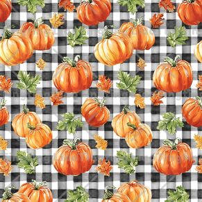 Thanksgiving,Autumn,Watercolor Pumpkin,Maple Leaf,Farm,Farmhouse,Black And White Plaid