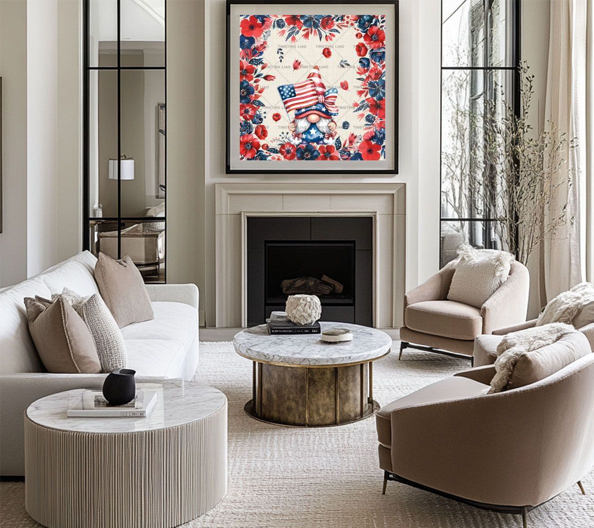 Independence Day,U.S. Flag,Dwarf,Watercolor,Flowers,Hand-painted,Jam