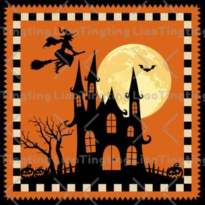 Halloween,Witch,Castle,Bat,Full Moon Night
