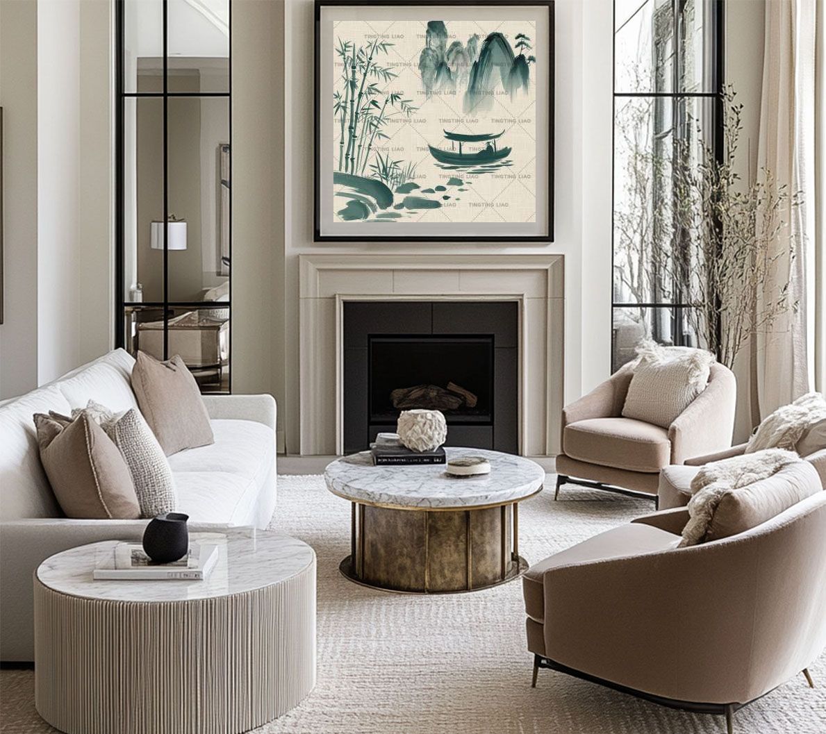Landscape,Ink,Watercolor Style,Chinese Wind,Countryside,Mountain Waters