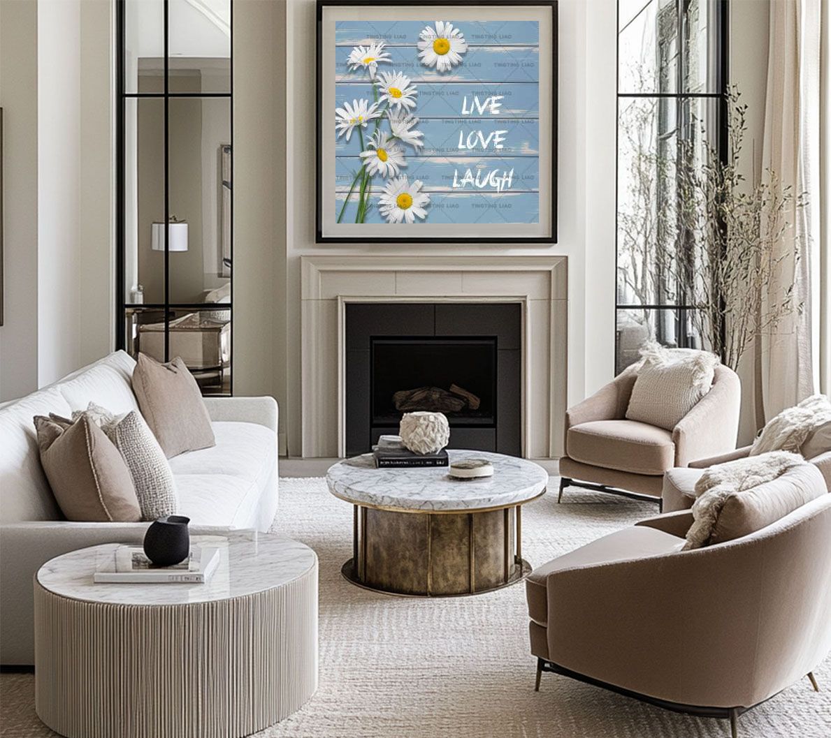 Spring,Flowers,Daisy,Blue Wooden Stripes,Farmhouses,Country