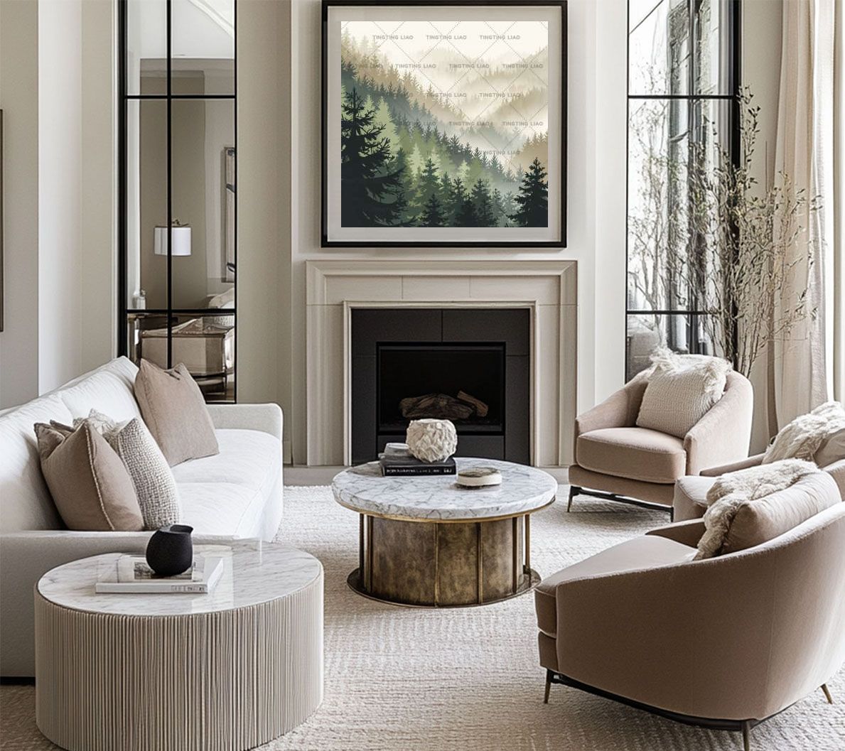 Landscape,Forest,Abstraction,Watercolor Style,Modern,Color Block
