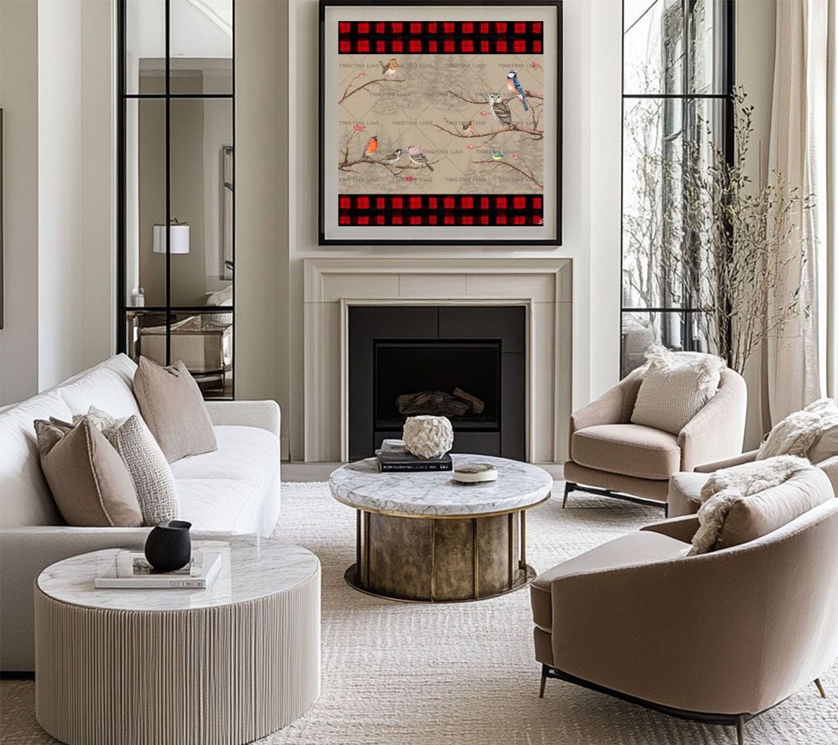 Christmas,Red And Black Patches,Boughs Of Cardinal Birds