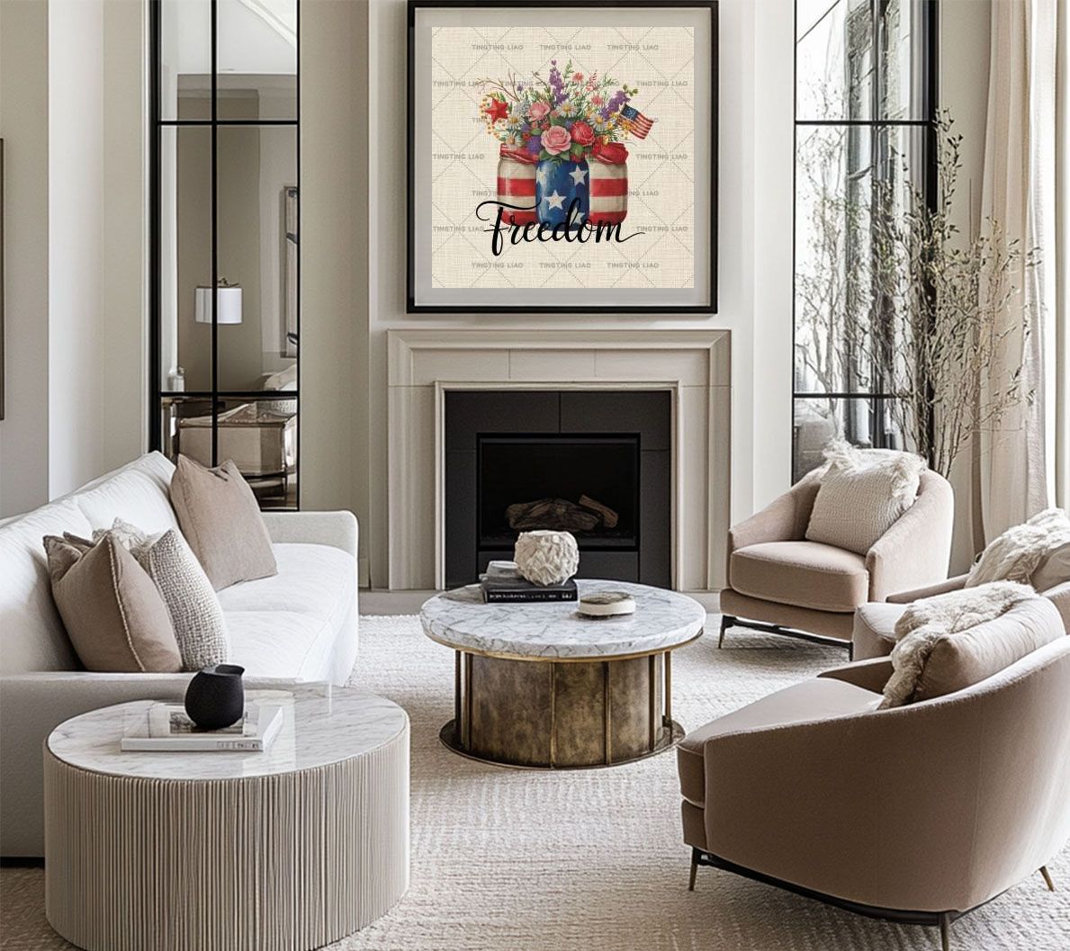 Independence Day,Spring,Flowers,U.S. Flag,Watercolor Style,Retro