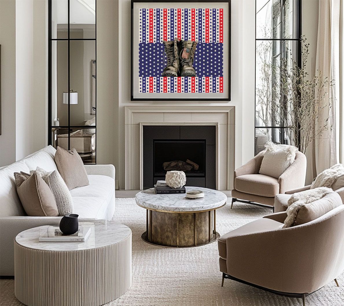 Independence Day,Military Boots,Watercolor Style,Stripes,American Flag,Retro