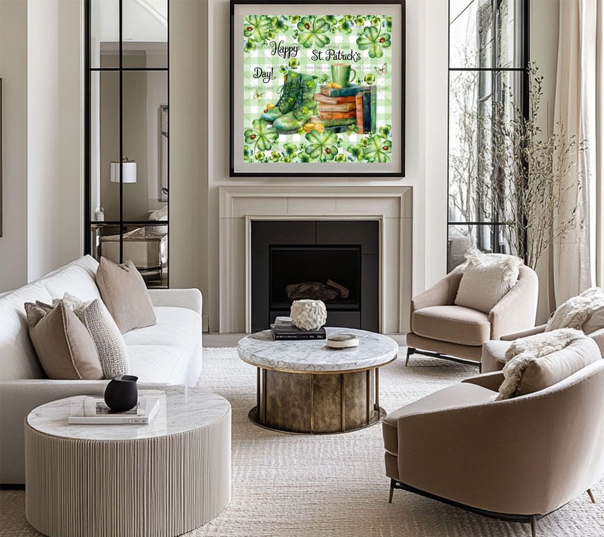 Saint Patrick's Day,Boots,Books,Gold Coins,Trileaf Grass,Fourleaf Grass,Butterflies,Text,Light Green Ribbon