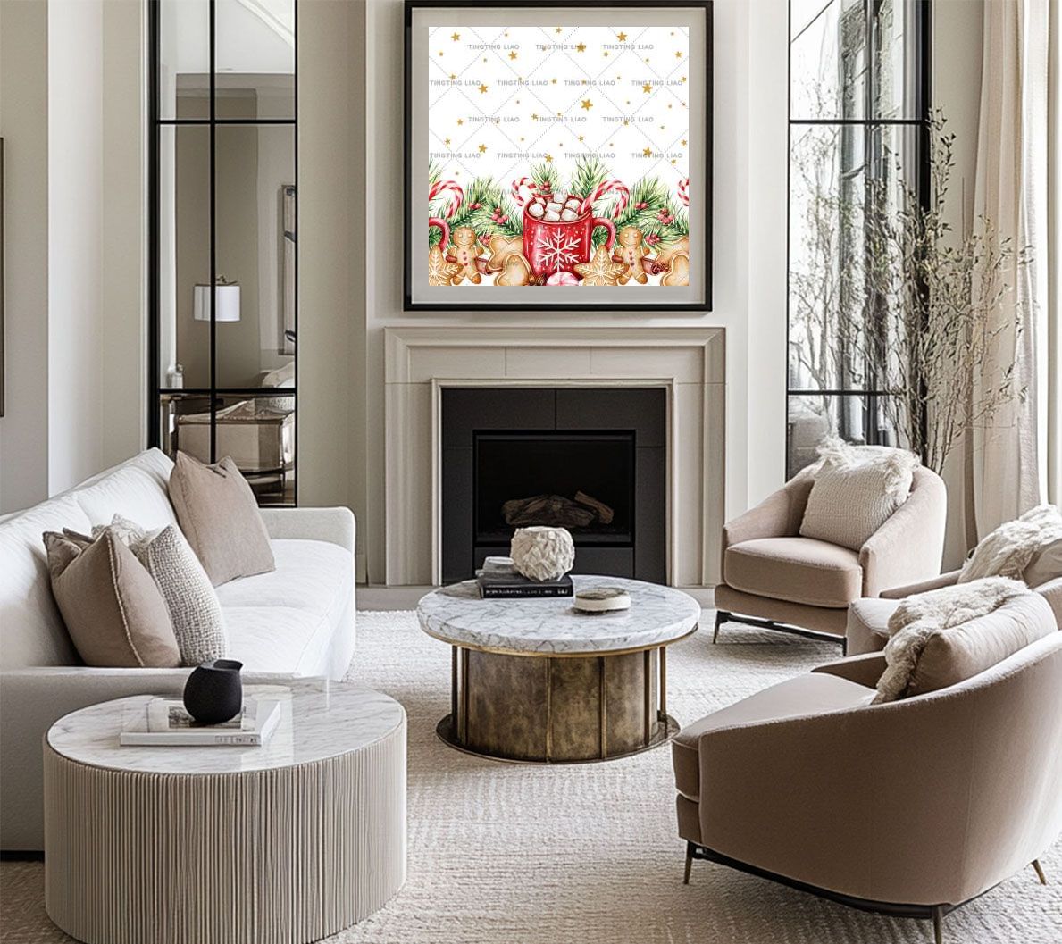 Christmas,Hot Cocoa,Candy,Ginger-cake People,Pine Needles,Watercolor