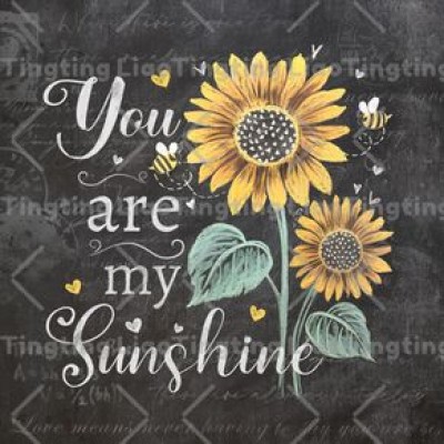 Chalk drawing of sunflower and bee with the words You are my sunshine