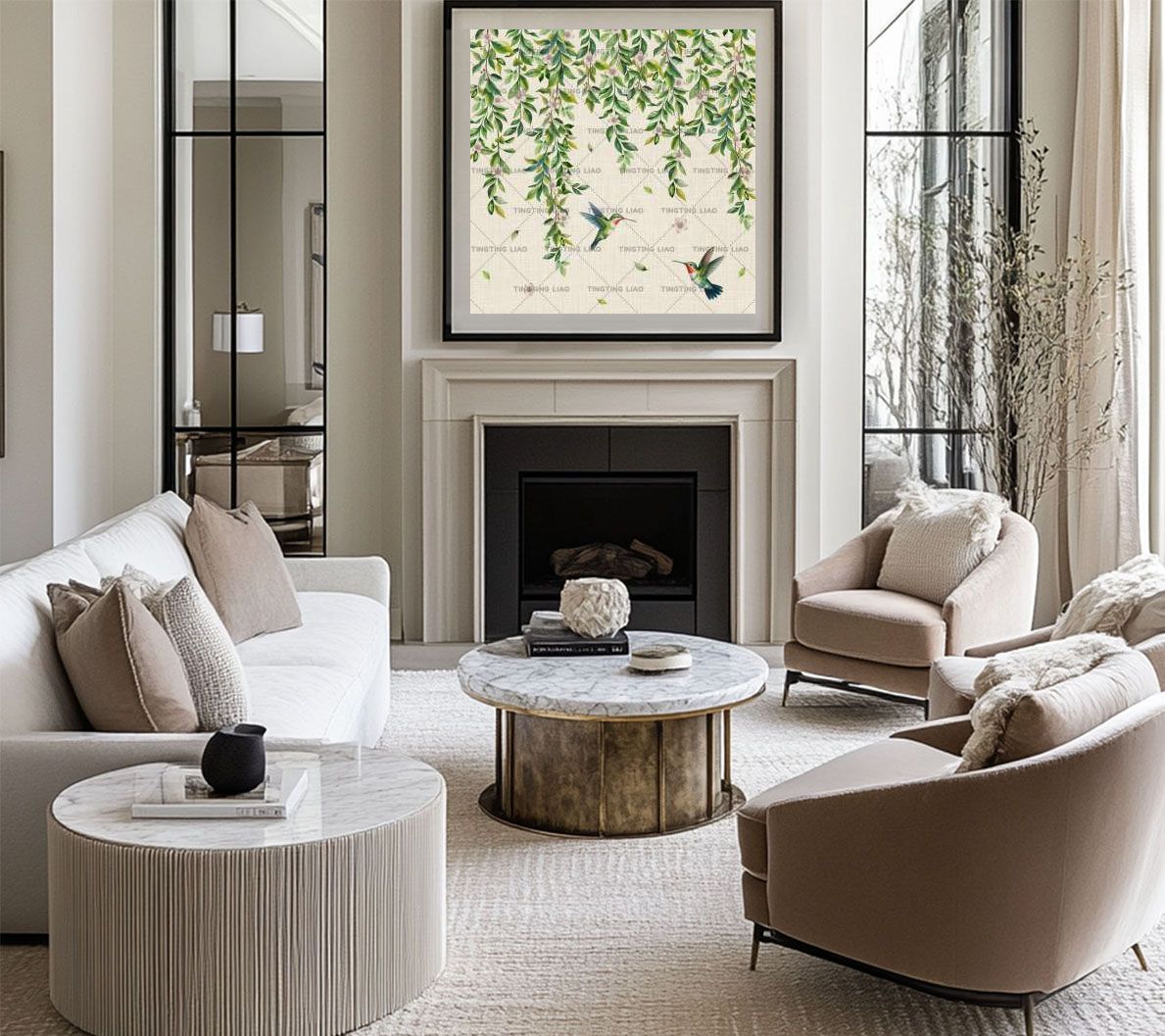 Spring,Flowers,Plants,Birds,Leaves,Watercolors,Sackcloth