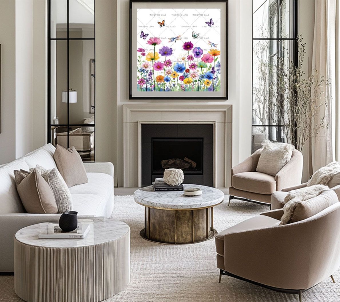 Spring,Flowers,Daisy,Butterflies,Dragonfly,Watercolor