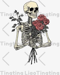 Skull holding roses 2